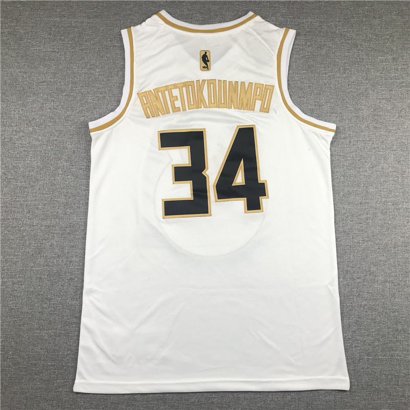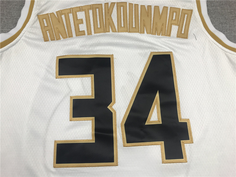 Milwaukee Bucks Giannis Antetokounmpo Jersey 34 white gold