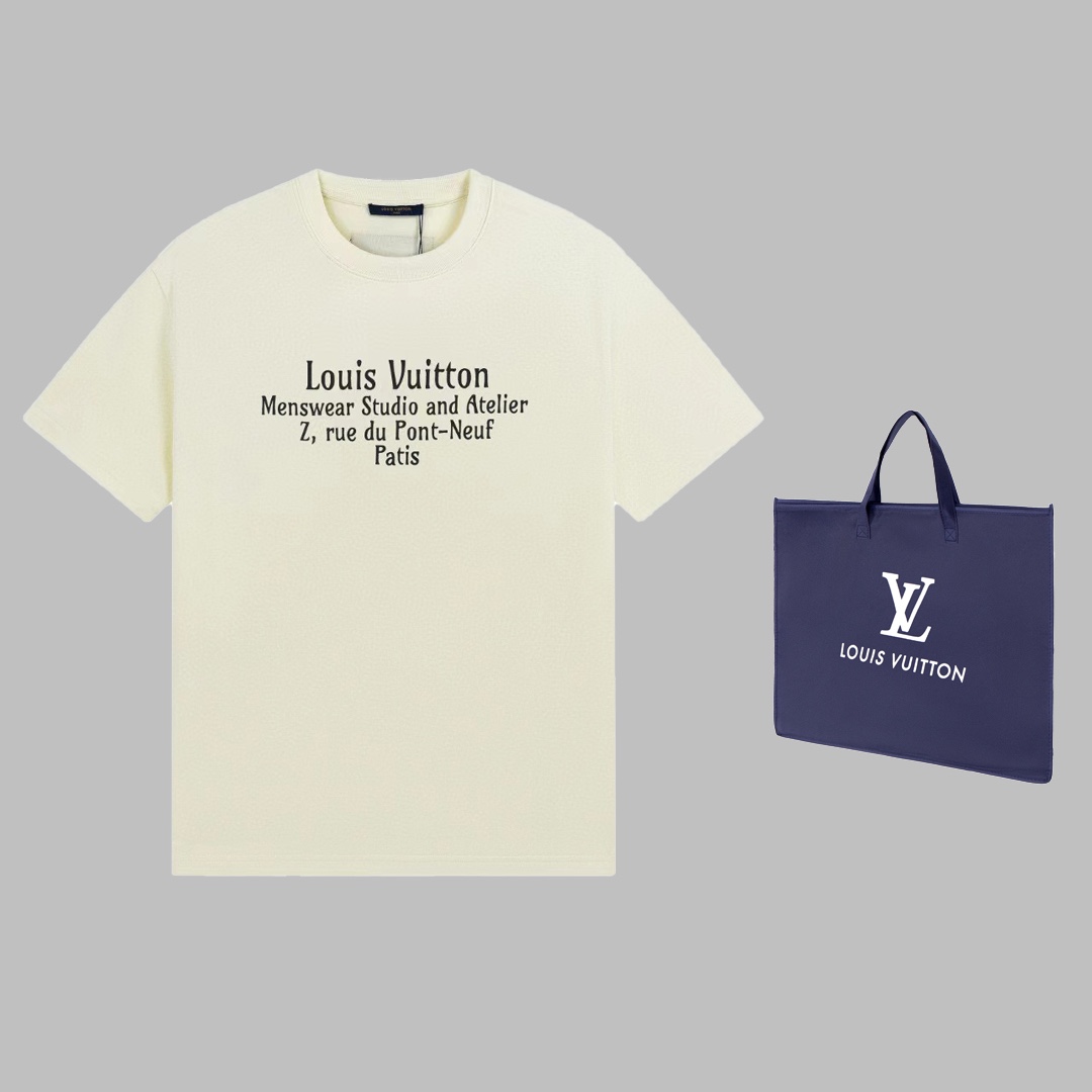 Tags: Louis Vuitton Crewneck Letter Printed T-shirt Apricot